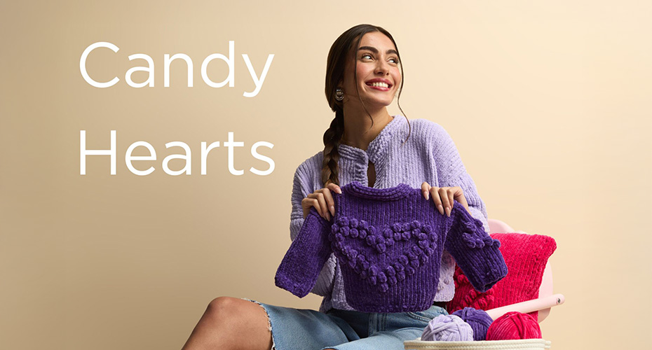 This blog post is about the Candy Hearts mini collection, three patterns knit in Bella Chenille.