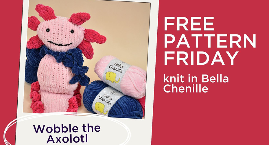 Happy Friday! Today’s free offering is this cute little critter – Wobble the Axolotl! Our talented Afifa Sayeed designed this with snuggles in mind, and you’re never too old to hug a stuffed animal. Made with Bella Chenille, you can’t go wrong making this sweet cuddle bug, whether it’s for you or your little one. …