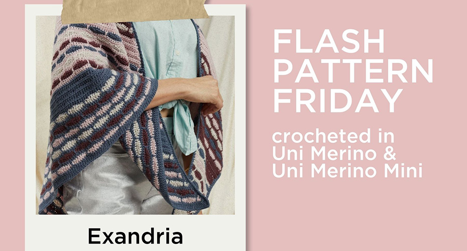 This blog post is about Exandria, a crocheted shawl in Uni Merino and Uni Merino Mini