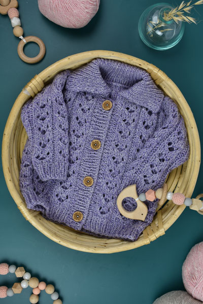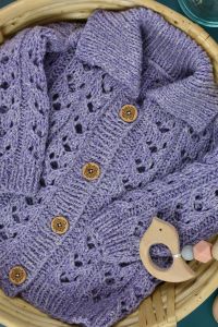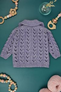 Dress your little one in timeless charm with this lacy collared cardigan. Designed to capture the magic of our Mystical Marl yarn, its enchanting, marled colors bring a touch of whimsy to every stitch. The cotton blend and lacy fabric make the Lulu Cardigan light and breathable, perfect for layering during any time of year. This lovingly crafted piece is as cozy as it is beautiful.